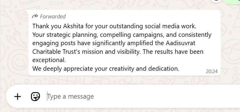I am extremely satisfied with social media marketing service of Akshita for Ashoka Aluminium. It exceeded my expectations with its quality and performance. The strategy and creativity used was excellent, and results were good. I highly recommend her to everyone.